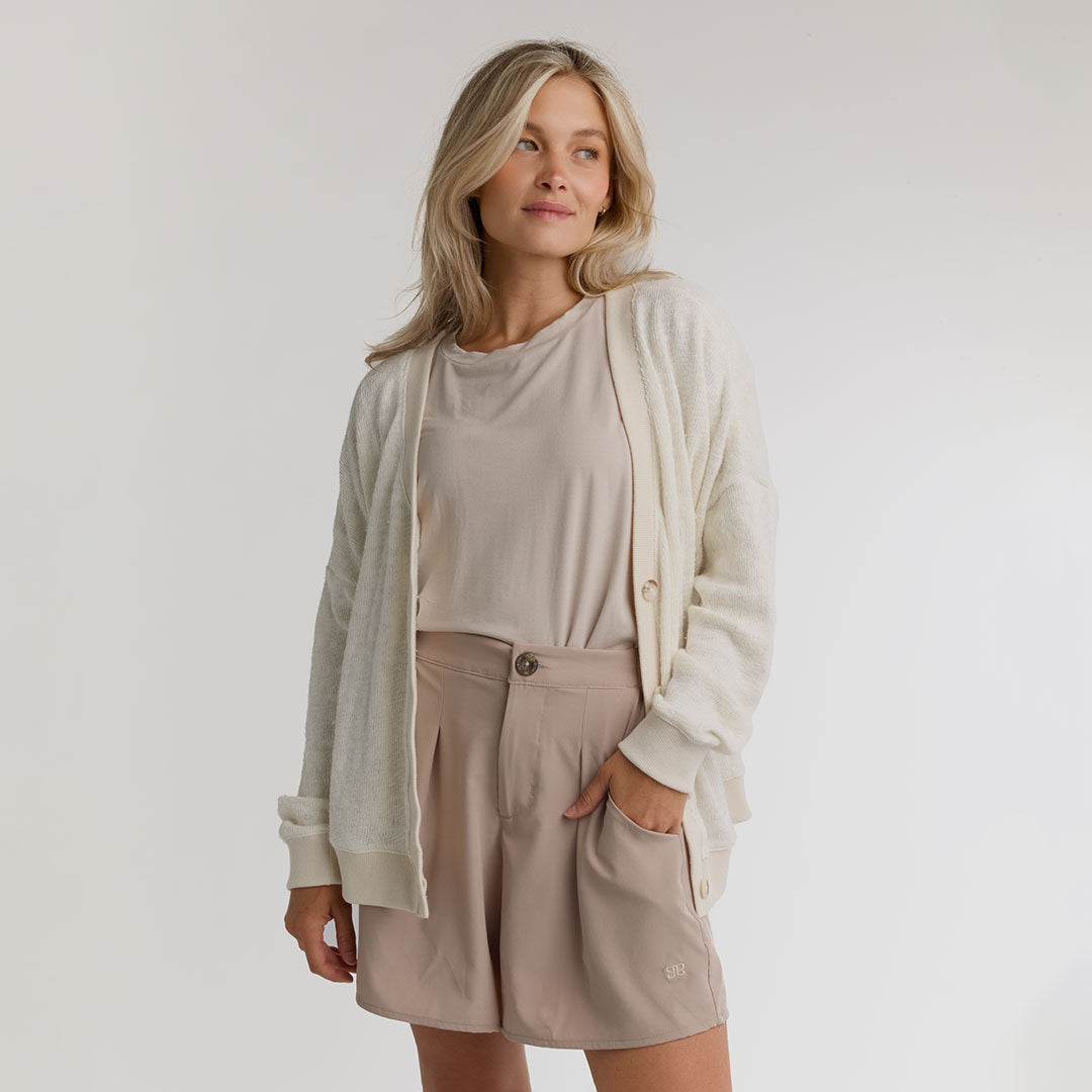 • Cream cardigan sweater