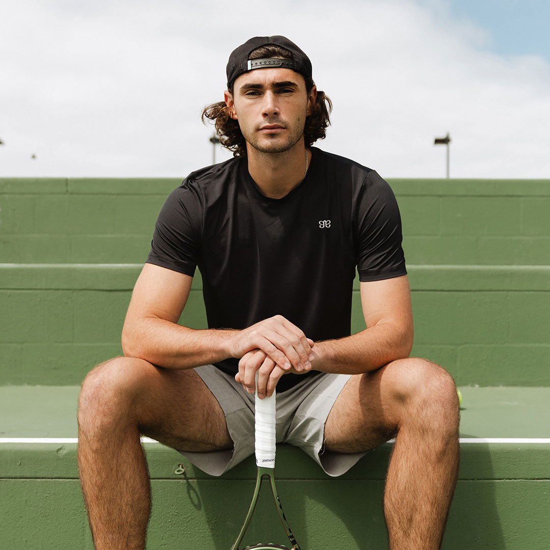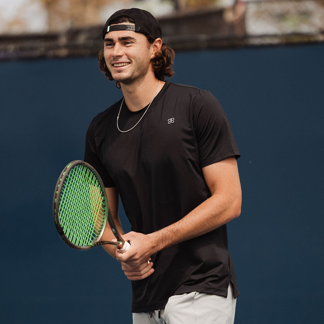 This tee looks great on my husband. The fabric is comfortable and fit is great.