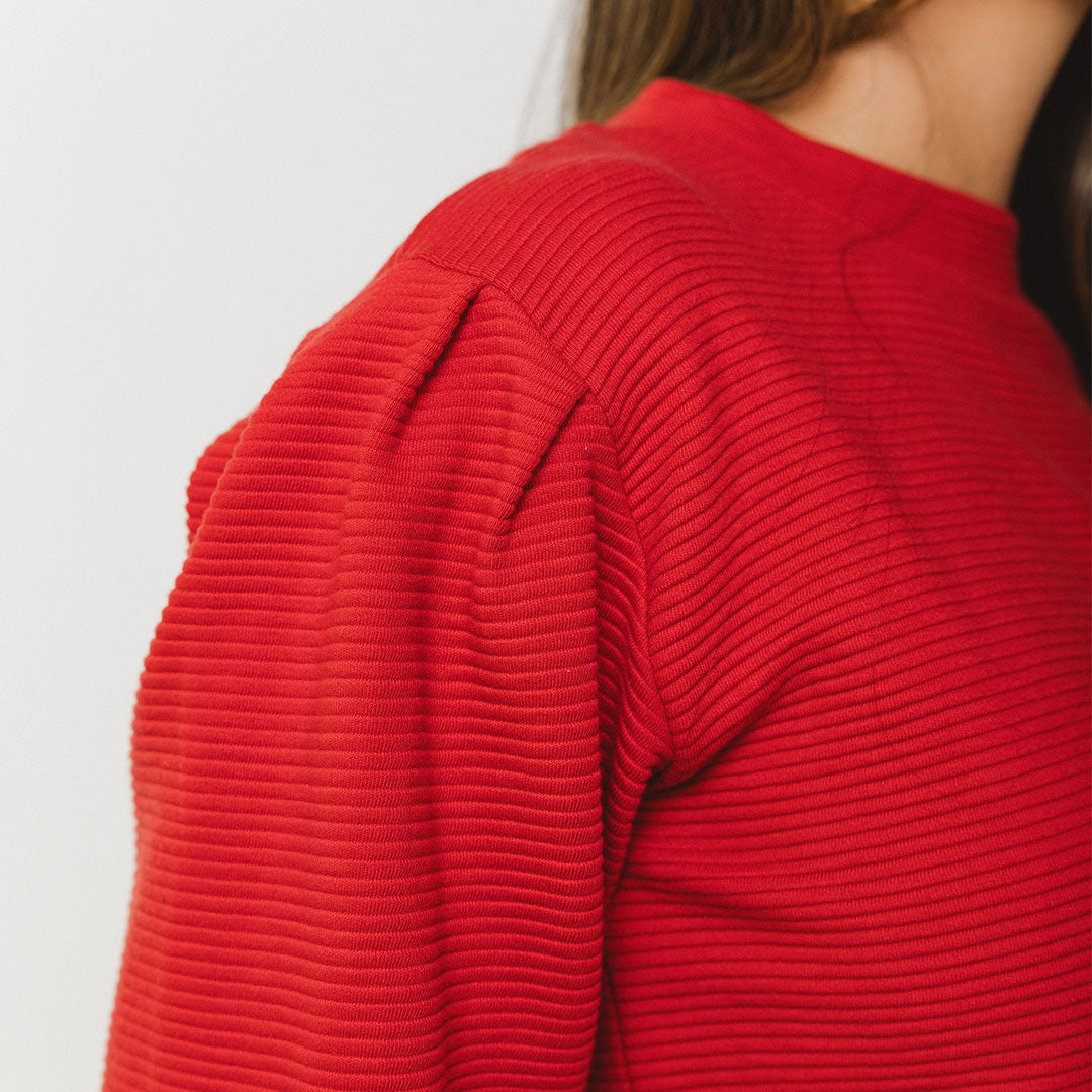 Even though it’s summer I couldn’t wait to try the Atlas ribbed sweater. The green color is beautiful! The material is thick enough that this will work well in the fall and winter. The larger cuff detail is really cute and I like the thicker waistband as well. This sweater is roomy but not sloppy. I ordered the XS and it fit perfectly!