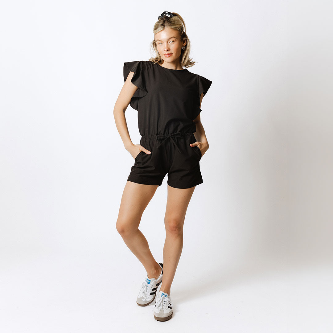 Customers say this romper is extremely comfortable and versatile, perfect for dressing up or down for any occasion. Many reviews mention the soft, breathable fabric that doesn't wrinkle and dries quickly. Users appreciate the flattering fit and ruffle sleeve details. Several tall customers note it works well for longer torsos, though a few mention wanting extra length. The shorts hit at a comfortable mid-thigh length with convenient pockets. Common feedback includes praise for the quality construction and how easily it transitions from casual to dressy with different shoes and accessories.