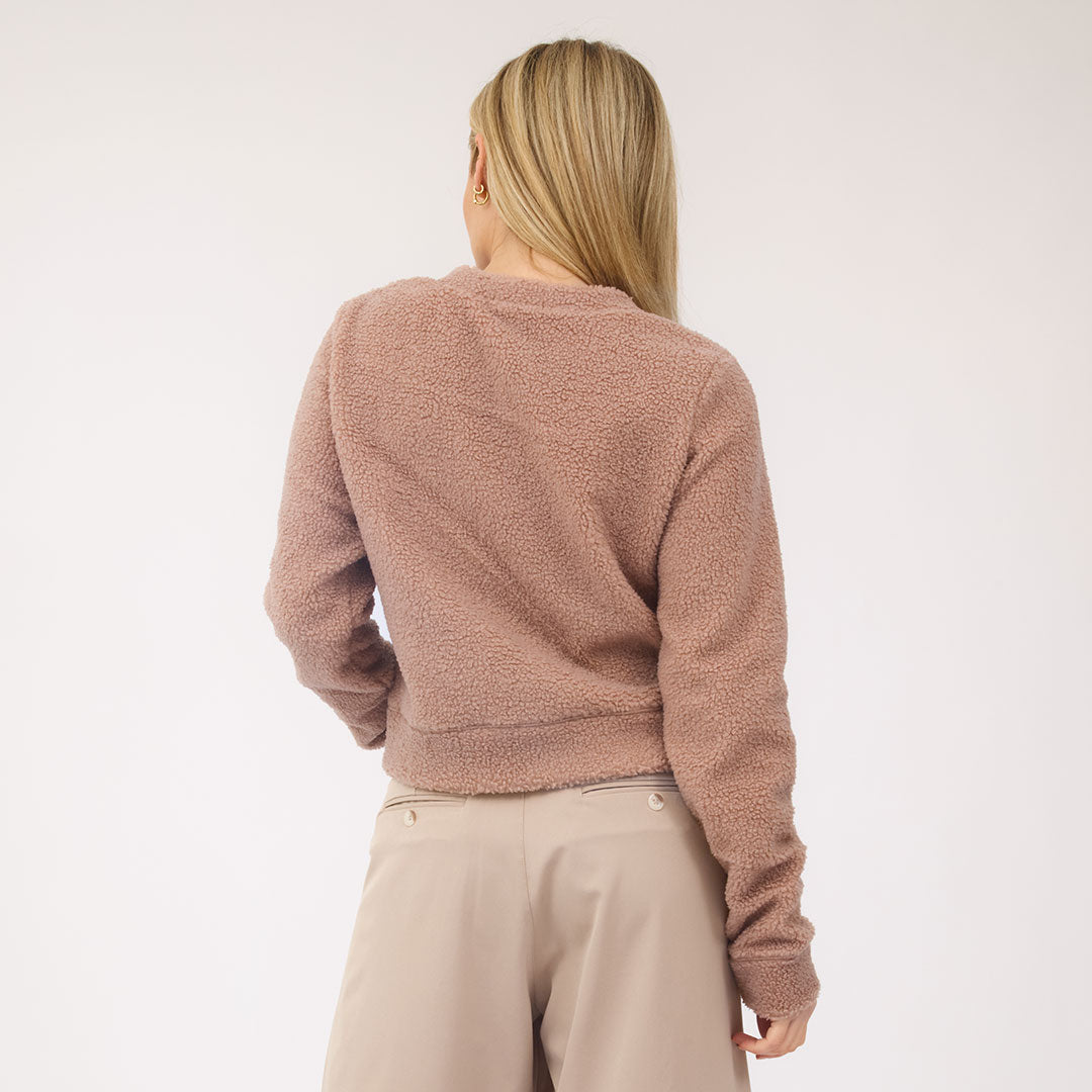 I love the Sherpa cardigan. It is truly the softest fabric, warm without being bulky and soooo cute! I wear it with my Audrey wide leg pants, trousers and also with denim. It is so versatile and easy to style! Love love love! Will be purchasing the black one as well!