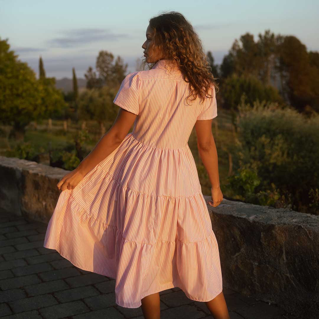 I love the style of these dresses. I purchased the pink striped one back a few months ago and enjoyed it so much I got the brown gingham one too. I like that they are bump and nursing friendly!