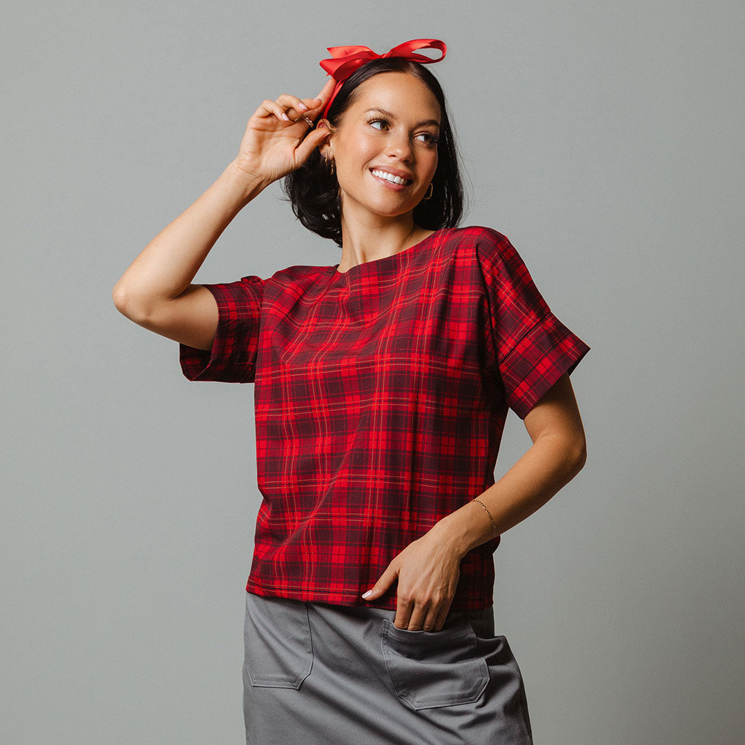 Flattering cut. TTS. Doesn’t wrinkle. Washes well. I have an hourglass shape and I can see how this would be a bit snug on the hip for some.
