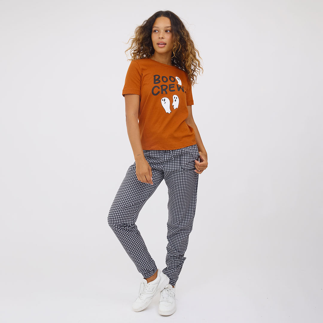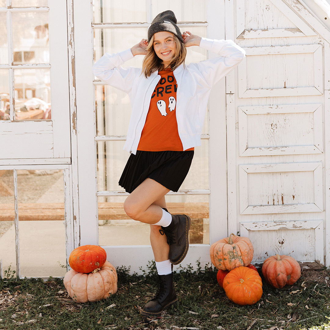 I am so excited to wear this at Halloween with my Spooky pants. It is listed in the description, but this is a different material than some of their other shirts. It’s not bad, but it’s not as soft or as stretchy. Boyfriend is the style not the material.