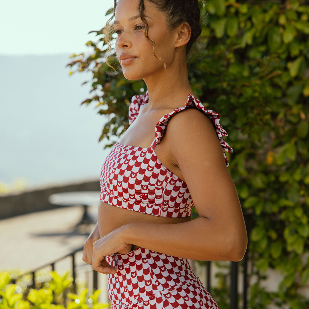 This top is the best combo of functional and girly! Love the ruffled straps that add the feminine flair.