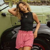 Perfect for an elevated look for Disneyland. Ruffle adds a nice touch. Stay cool. But they do run big! I got an X-Small and should've sized down.