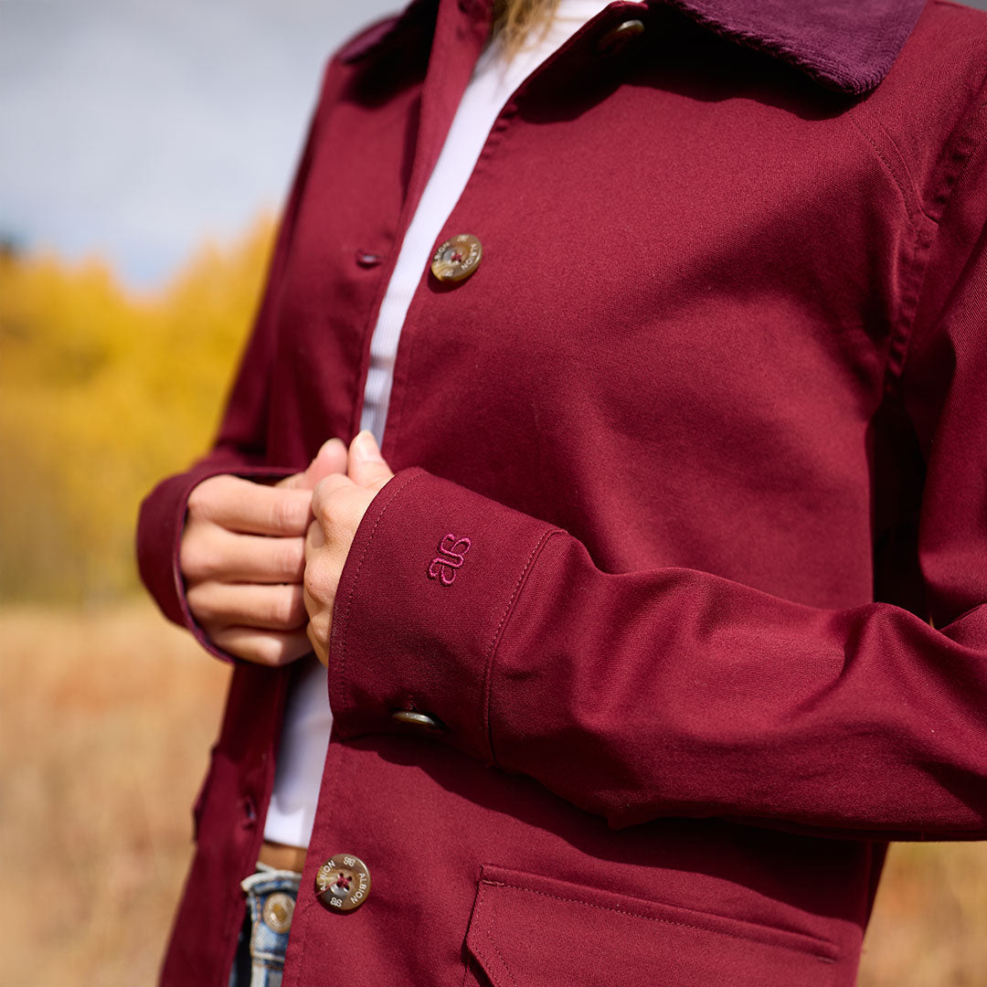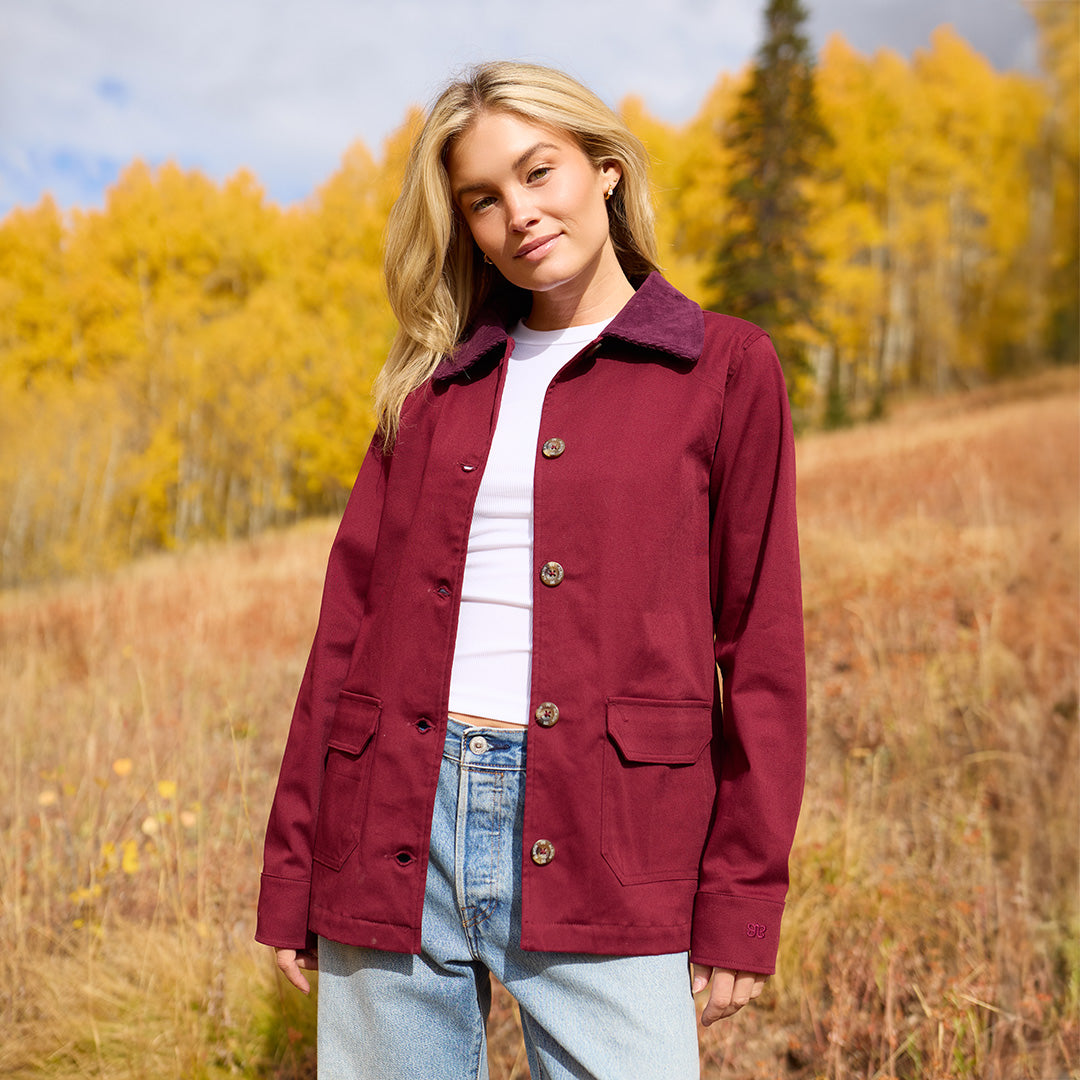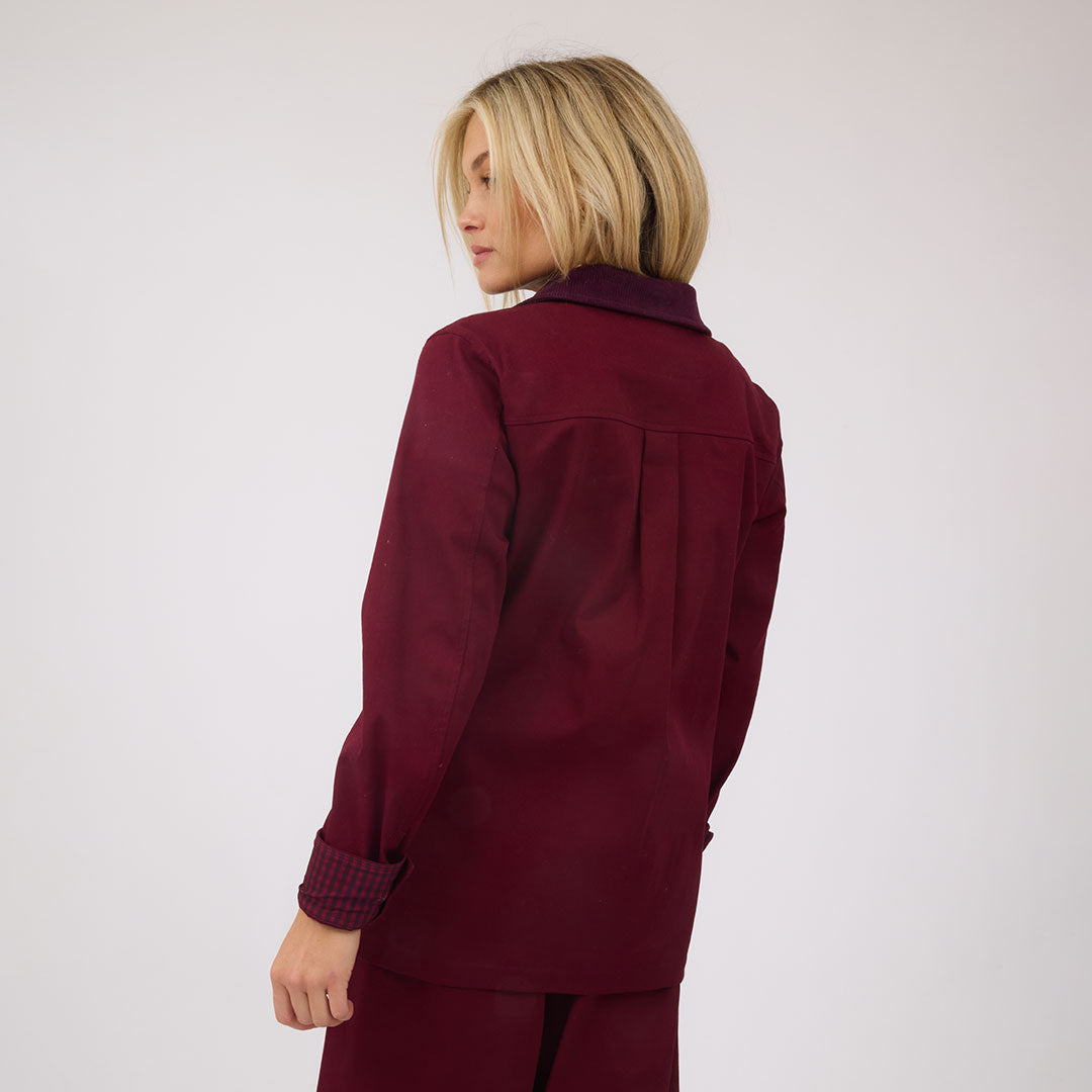 I love this burgundy jacket. I also have the tan one. The fit is so good but this color is just wow.! I can wear it with a dressy outfit and I can also just wear it dress down with jeans.