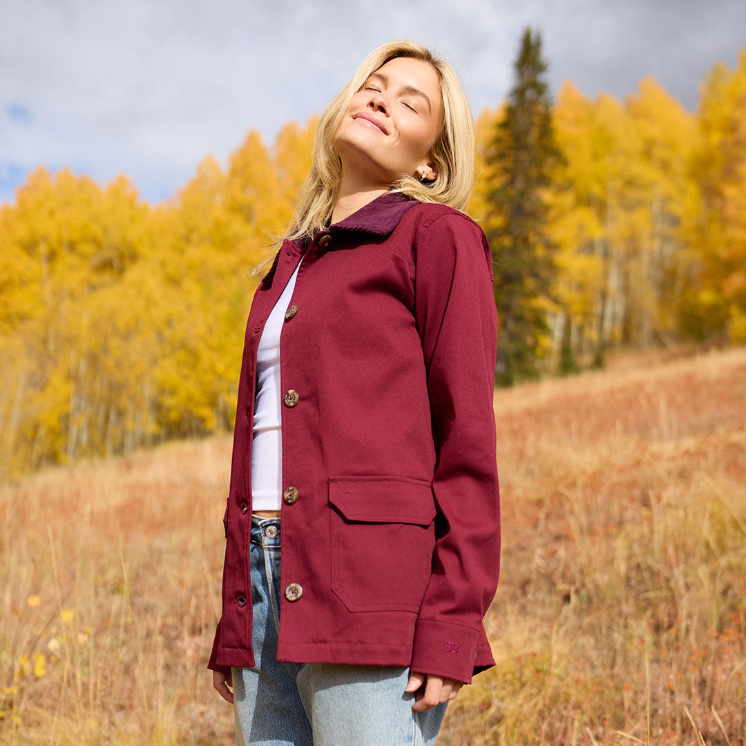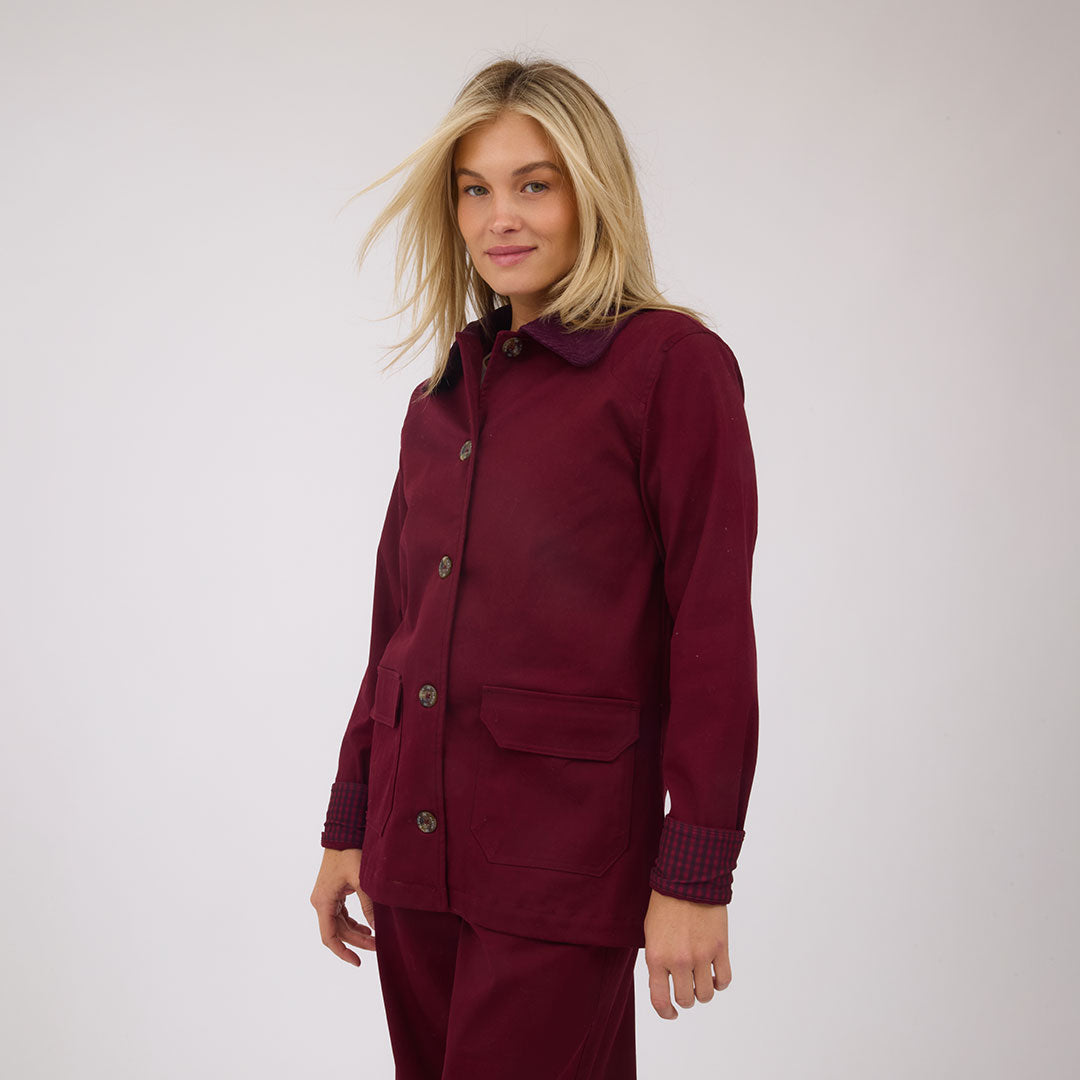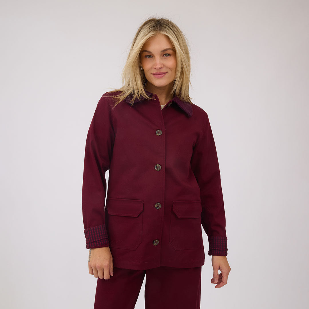 I love this burgundy jacket. I also have the tan one. The fit is so good but this color is just wow.! I can wear it with a dressy outfit and I can also just wear it dress down with jeans.