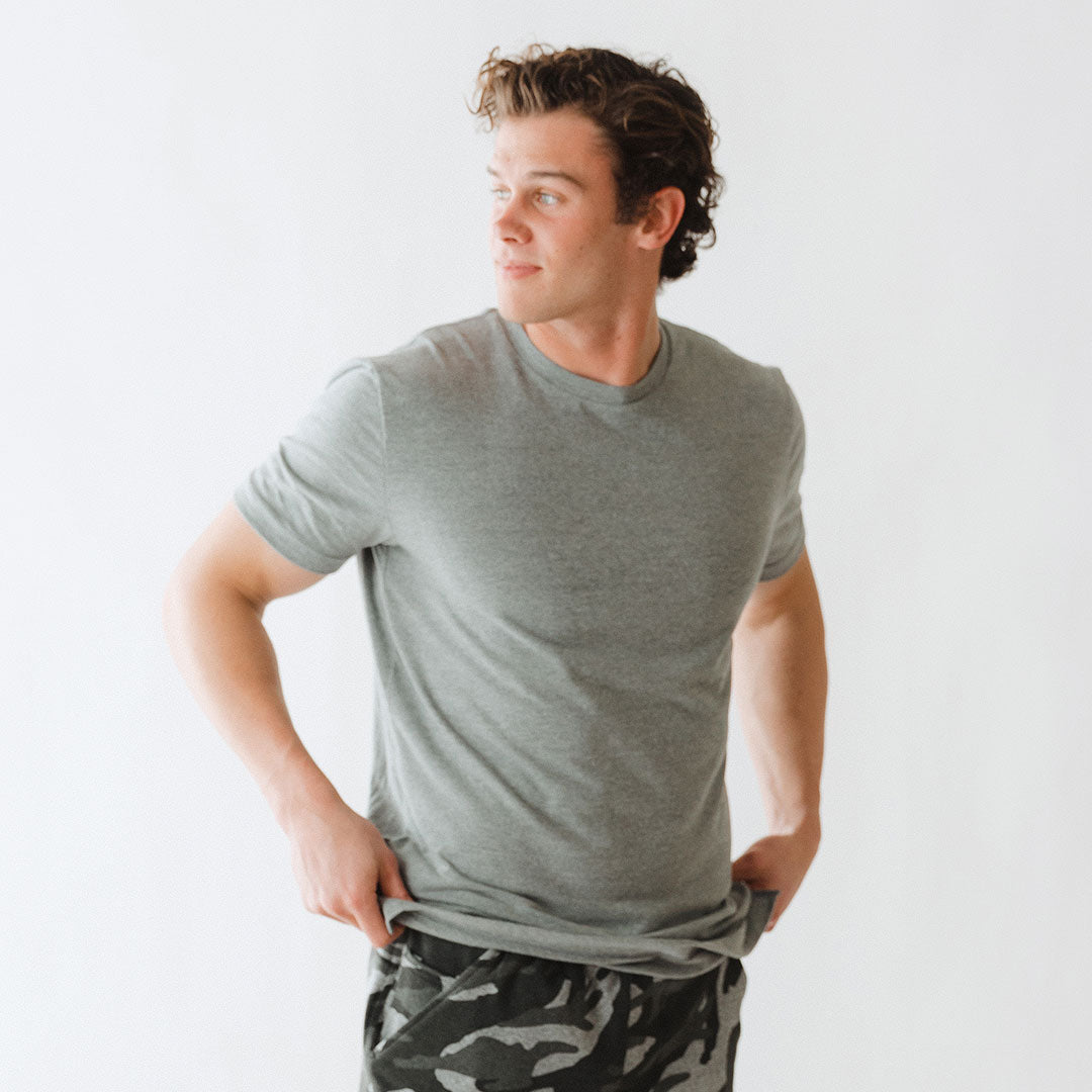 No wardrobe is complete without a go-to basic grey crew neck tee. This heathered grey is a classic, super soft, and packed with versatility. For a trim look pick your regular size and pair with some Jetsetters. When you're ready to relax, size up and grab your favorite joggers to kick back in style.