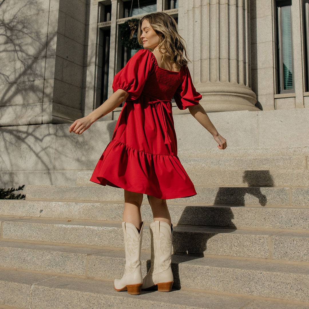 This dress is the most perfect fit. Not being too long or too short. I’m 5’4” and I wear a size small!