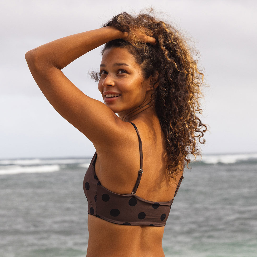 The Rise bikini top has to be one of my all-time favorites from Albion. It is so comfortable and so flattering. With the addition of the new pink sparkle fabric, I really feel that this top couldn’t get any better! Absolute perfection!!