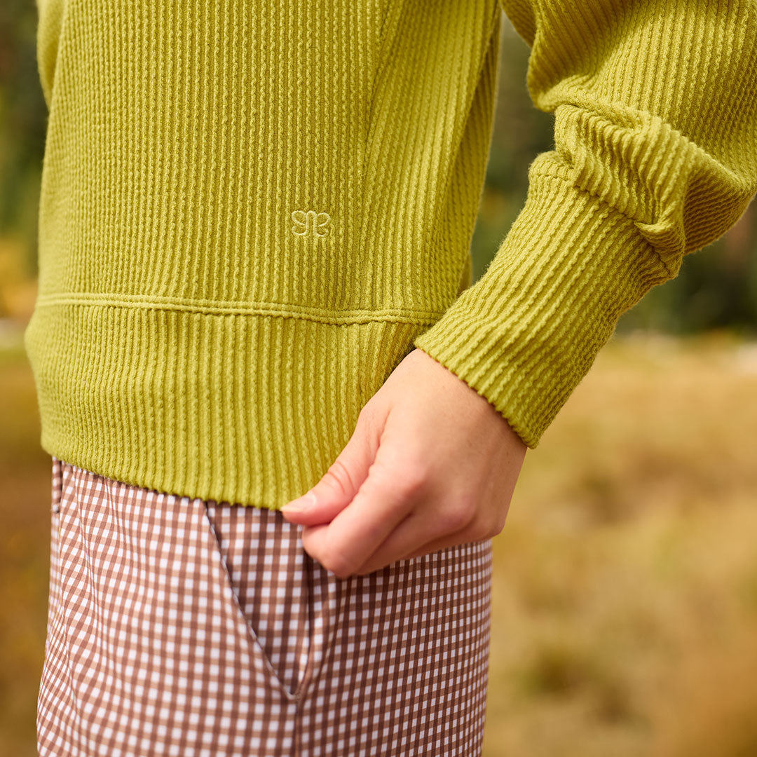 This is one of my favorite colors on me, so the second I saw this, I snatched it up! I love the Serena top period! It’s a very flattering top for less than perfect body shapes and hides my imperfections like a champ. I’m 5’6”, 145 lbs and got a M. The material is soft and stretchy and has just the right texture to it. It’s not a sweater per se, but more like a long sleeve shirt. (Not too thick, so when winter comes, I may be wearing it with a layer underneath.) Just a gorgeous style and pretty color!