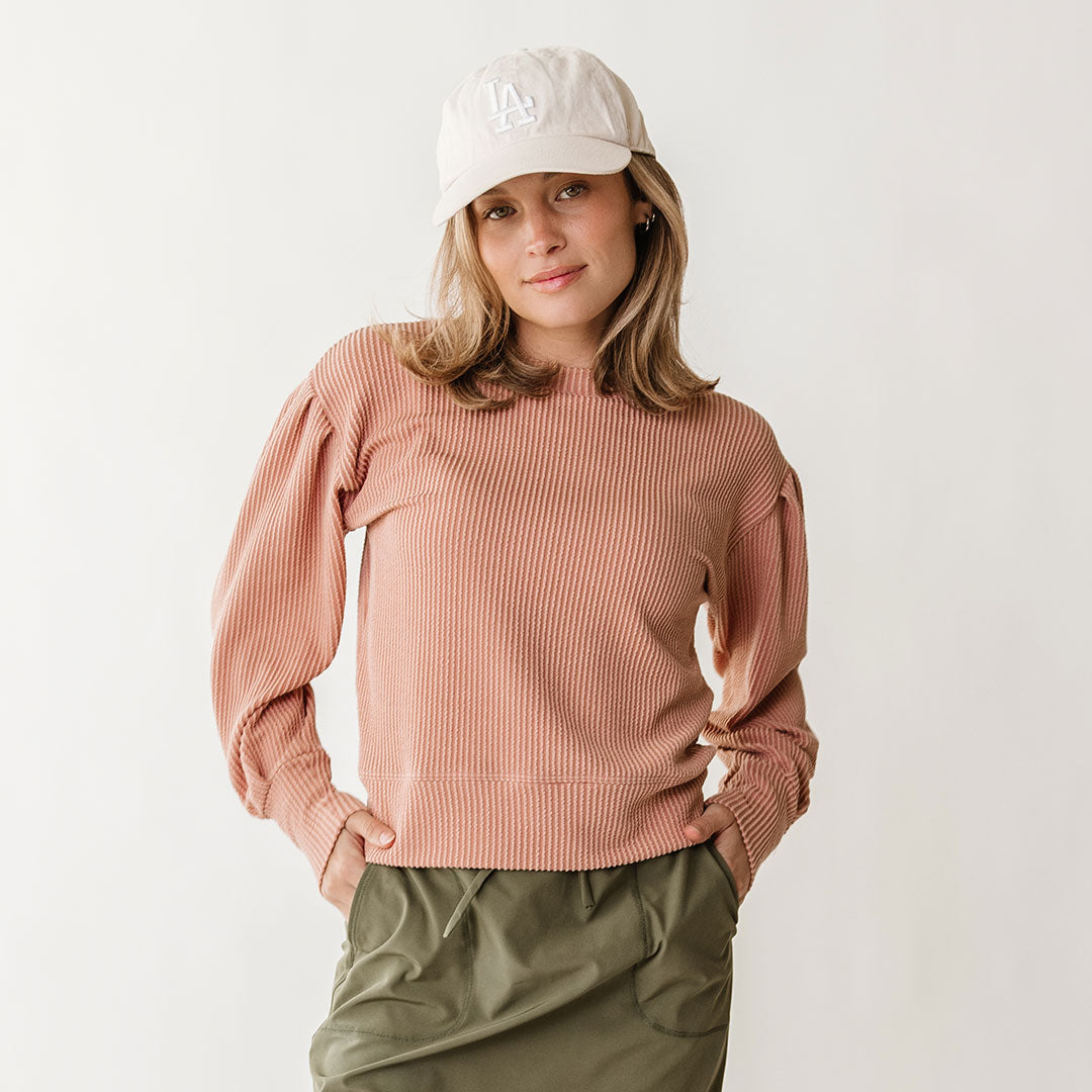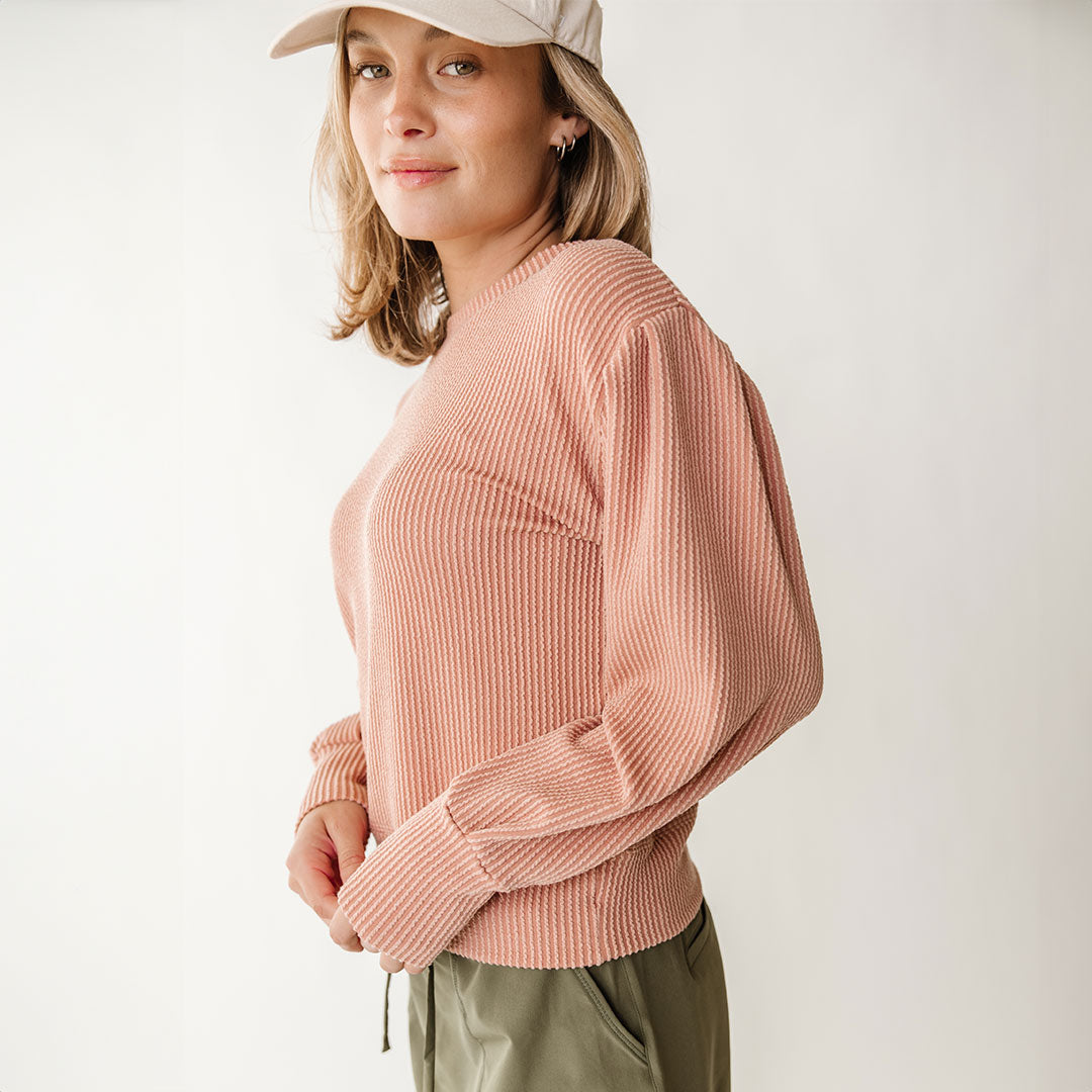 This is one of my favorite colors on me, so the second I saw this, I snatched it up! I love the Serena top period! It’s a very flattering top for less than perfect body shapes and hides my imperfections like a champ. I’m 5’6”, 145 lbs and got a M. The material is soft and stretchy and has just the right texture to it. It’s not a sweater per se, but more like a long sleeve shirt. (Not too thick, so when winter comes, I may be wearing it with a layer underneath.) Just a gorgeous style and pretty color!