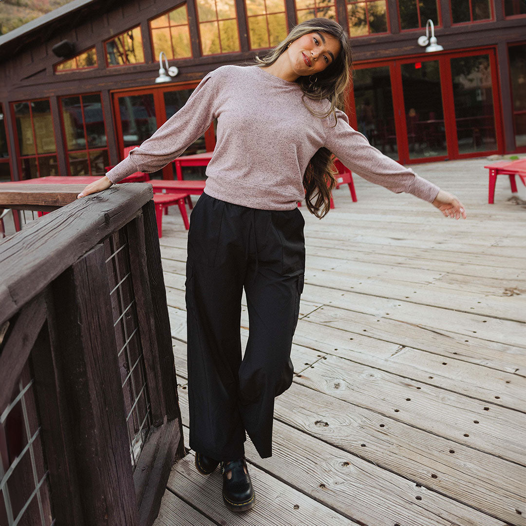 This shirt is so cute and flattering. I like that it is cropped but not too short and is still a little loose. I really like the color too!