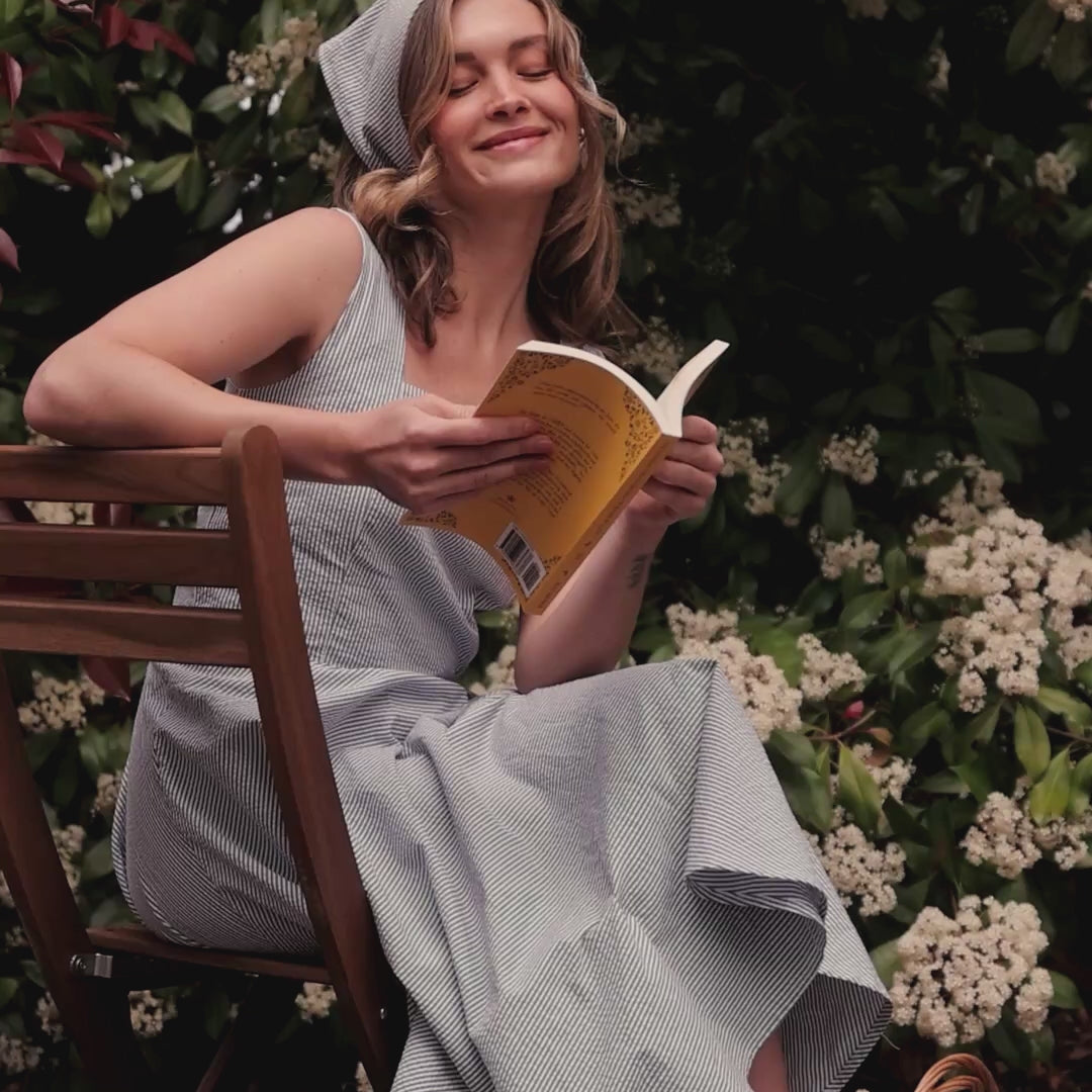Sonata Dress, Navy Seersucker