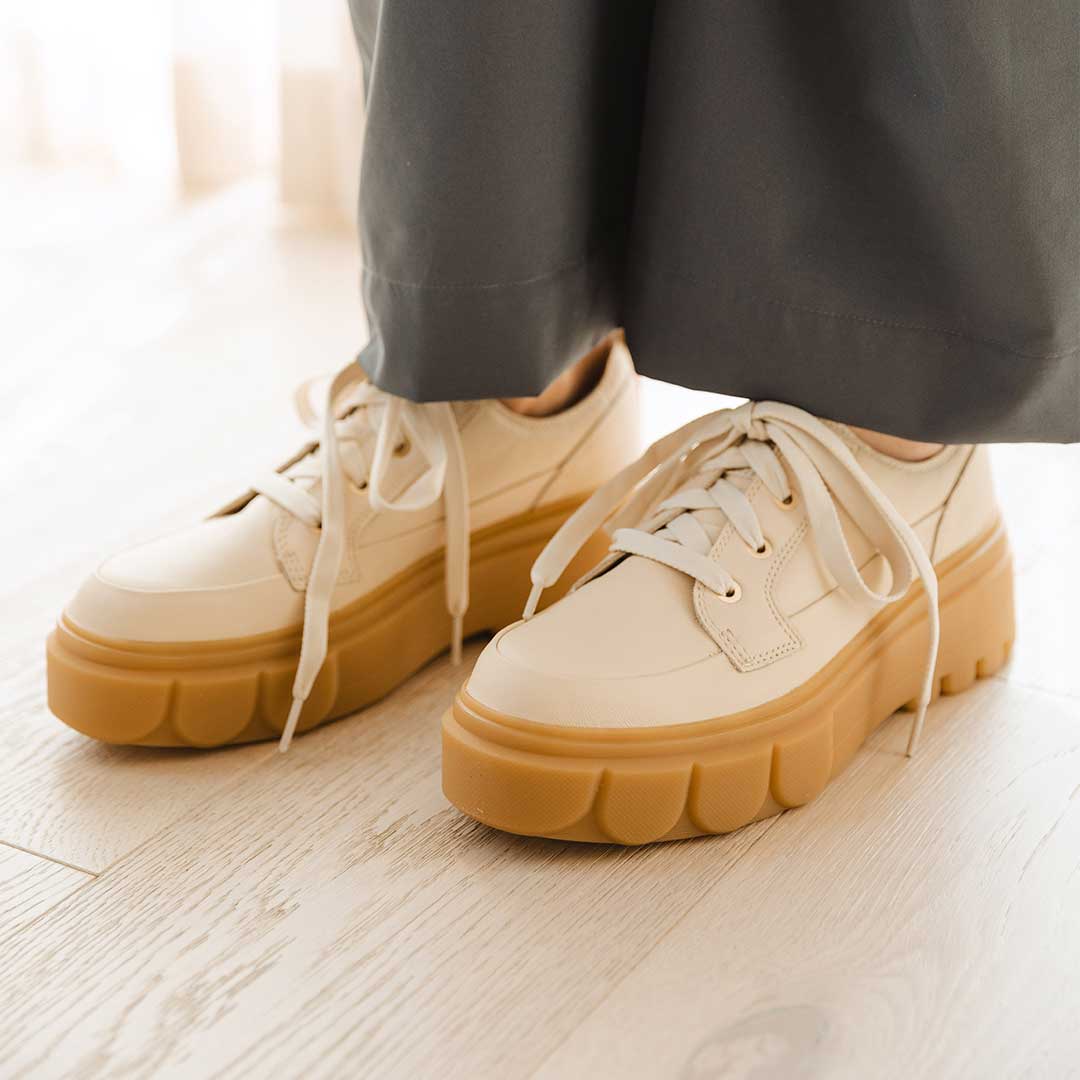 Take your shoe style to new heights! Waterproof leather and a rubber platform heel make these sneakers ideal for around-town wear and go great with crew style socks.