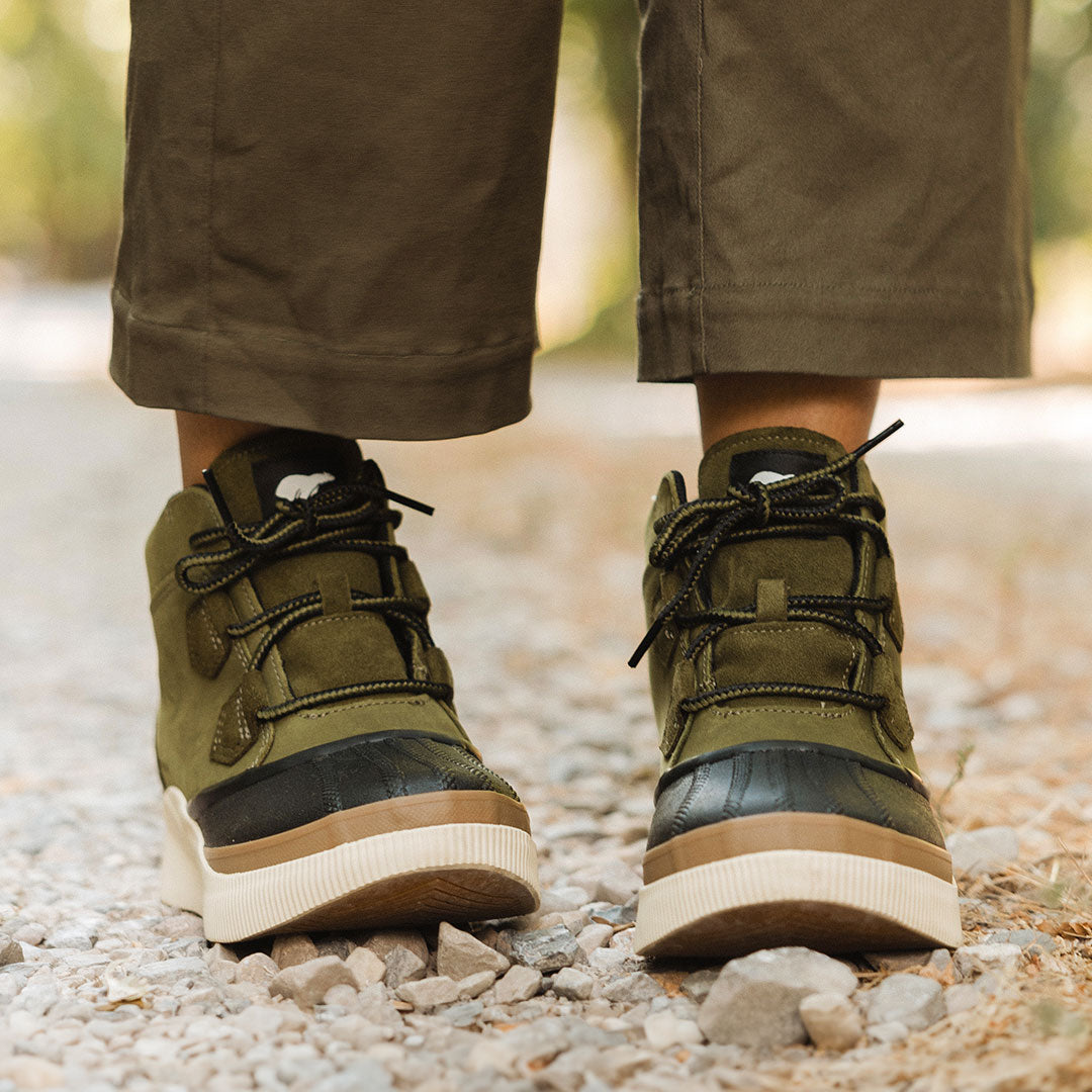 OUT N ABOUT™IV Classic duck boots in Utility Green and black—a beloved classic from SOREL. Get outdoors with these comfortable and rain ready boots! Pair them with our joggers or jumpsuits.