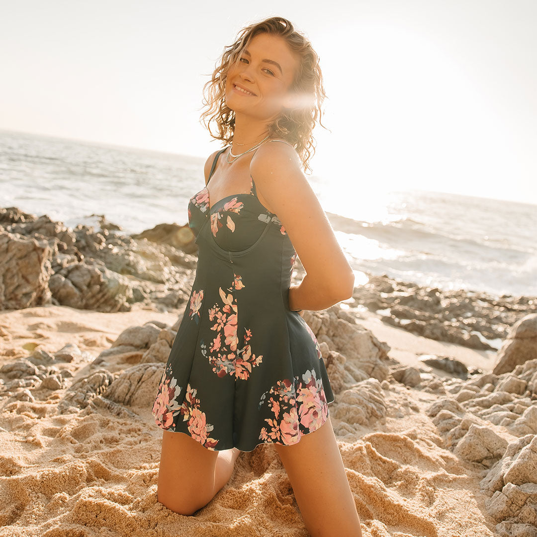 This dress is super flattering yet still modest. I feel beautiful in it and can easily walk around by the beach or pool in front of whoever and still feel comfortable and pretty! I am 5 ft tall 90 lb and xxs is a bit tight to get on ( I had to squeeze it up!!) but once it’s on it looks great. I got a bunch of compliments on this!