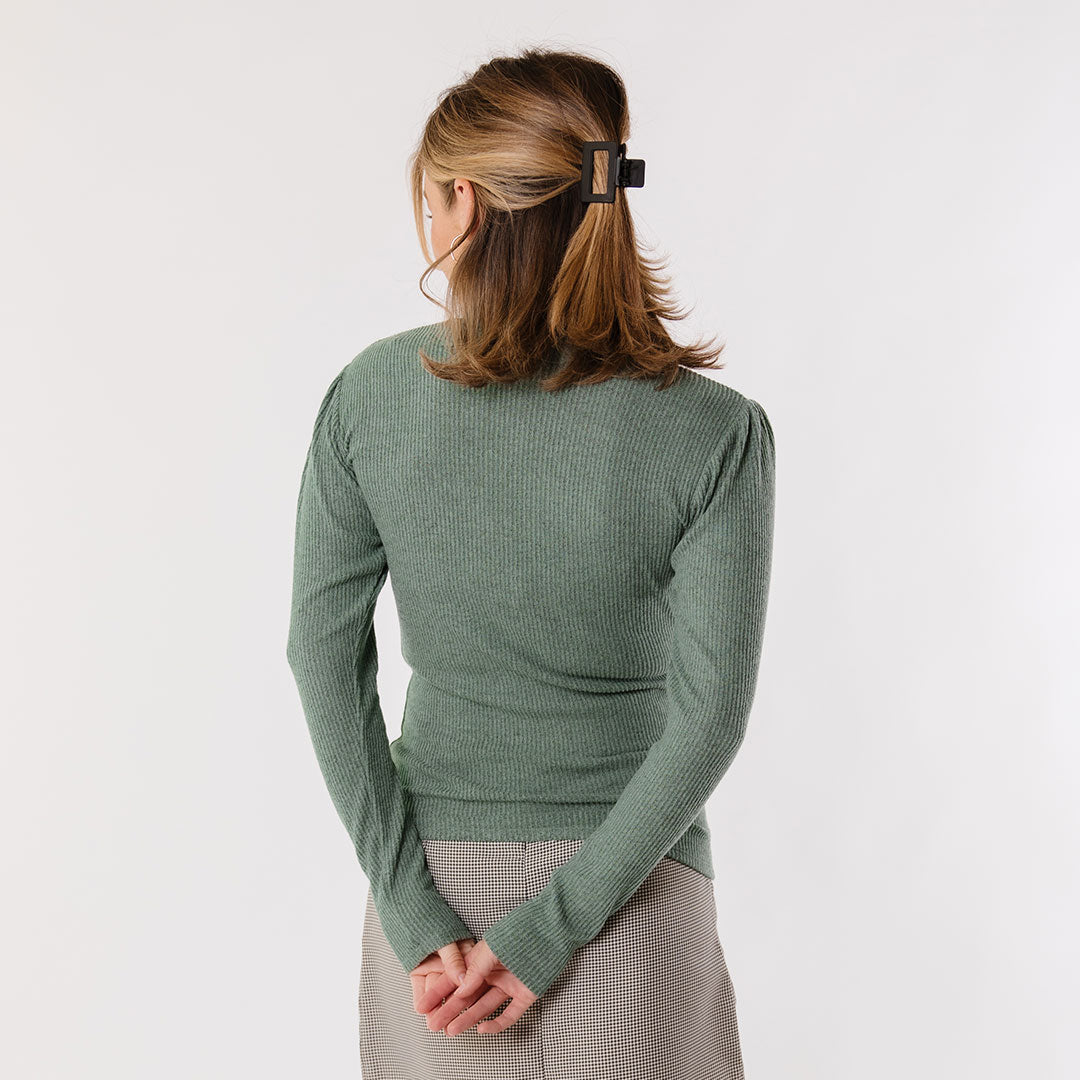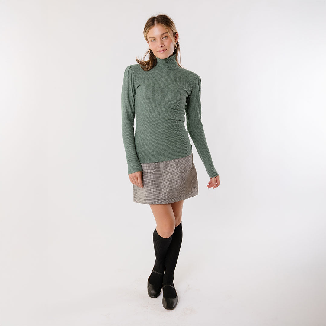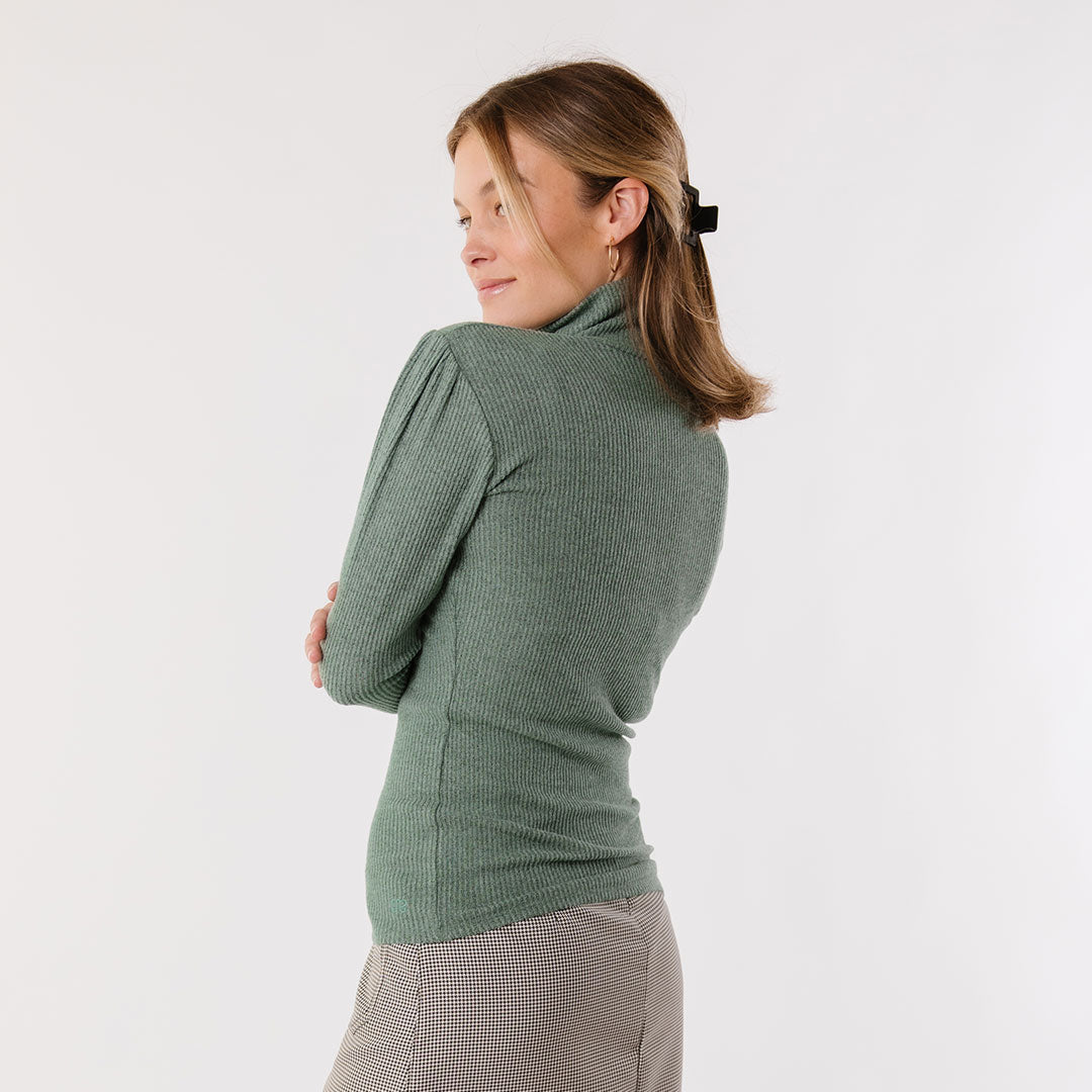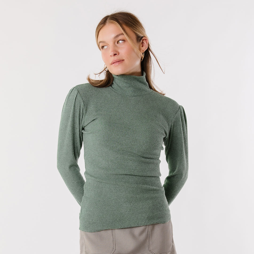 I love this ribbed turtleneck. The puffed sleeve gives it a fun and different look from a standard turtleneck. I have enjoyed wearing it multiple times already and have received compliments when I wore it!