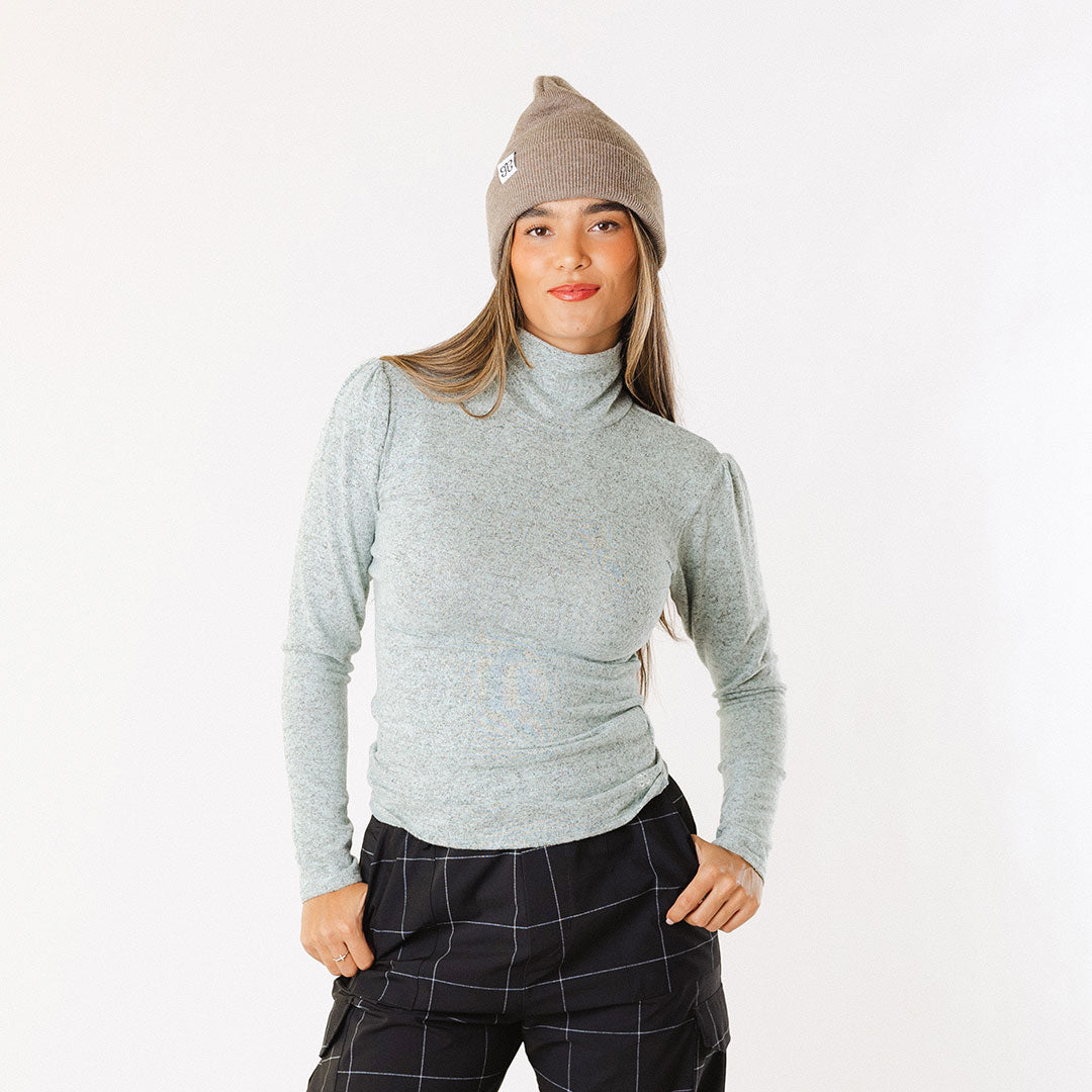 I love the small detailing in the shoulders and subtle turtle neck. Great office piece.