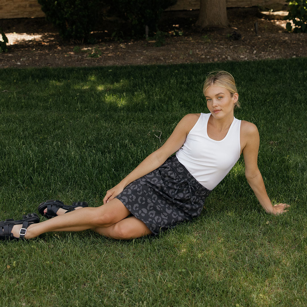 Super cute, easy fabric (no wrinkle, quick dry), love the thick waist band. Great length. Love!