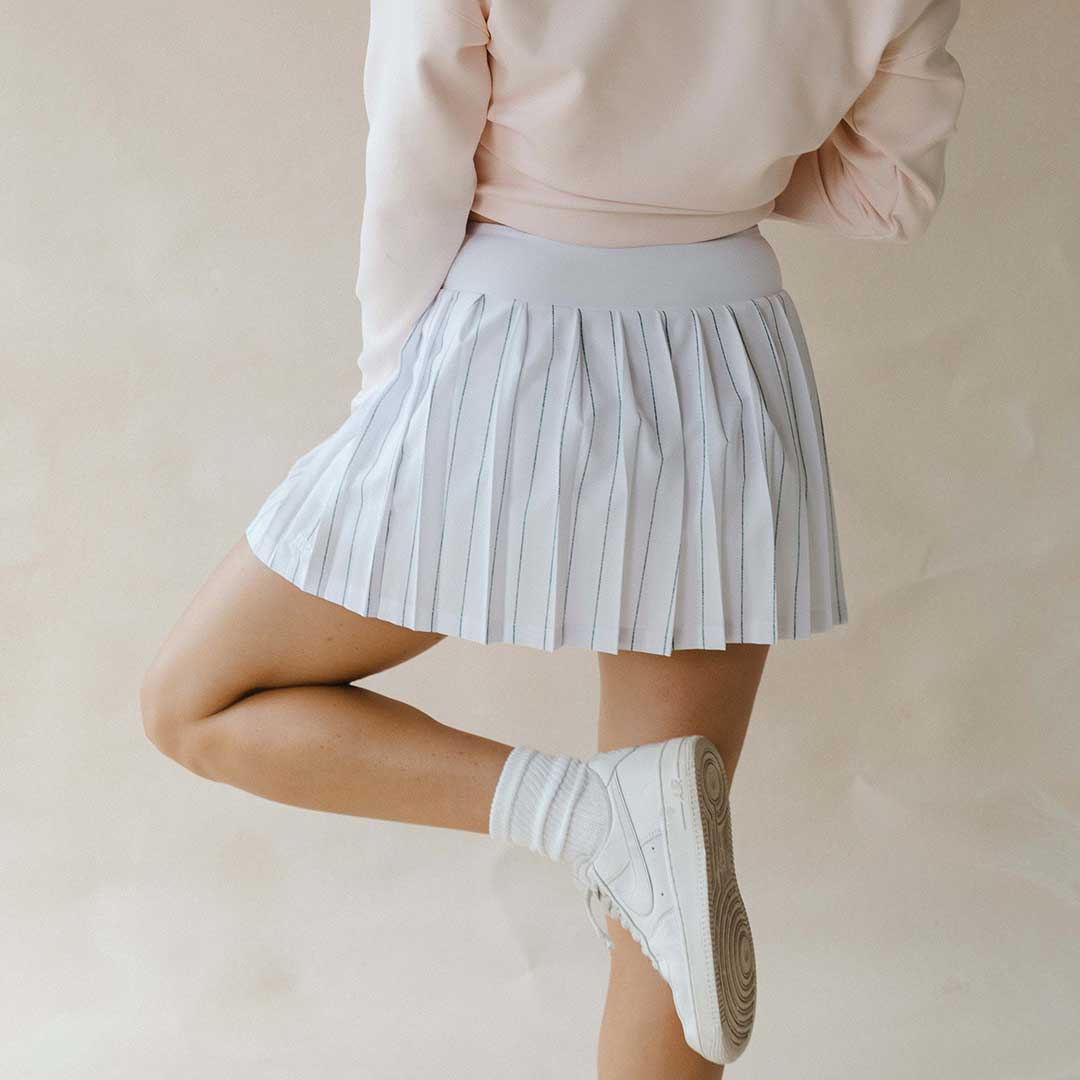 Color: Tie Breaker Tennis Skirt, White Pinstripe